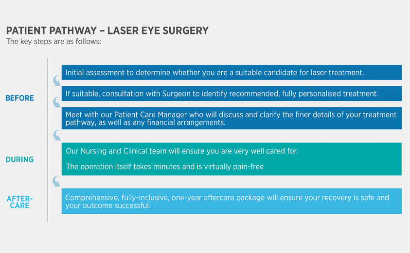 To find out if you are a candidate for laser surgery we invite you to undertake a suitability evaluation with one of our highly-experienced Optometrists. They will perform a series of of screening tests to determine if you are a candidate. One of our Patient Care Team members will arrange for you to meet one of our Consultant Surgeons. The Surgeon will examine your examine your eyes in detail and will recommend what is the best and most personalised treatment for you.